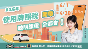 台中市政府地方稅務局提醒車主,115年使用牌照稅於4月1日開徵,繳納期限至4月30日止,稅單已於3月下旬陸續寄發,請車主多加留意是否收到,並請在期限內繳納,以免逾期受罰。
